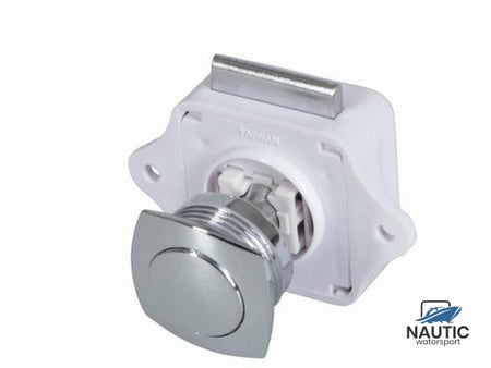 - Robuster Druckknopf zum zuverlässigen Schließen der (Schranktür-)Schlösser an Bord