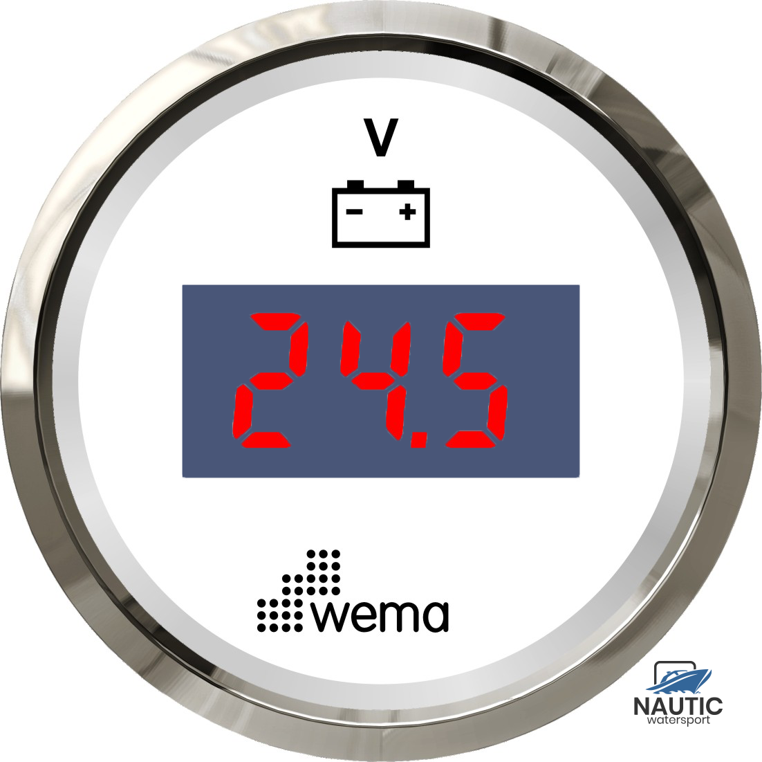 Voltmeter der Silberserie, LED, 12 V, weiß