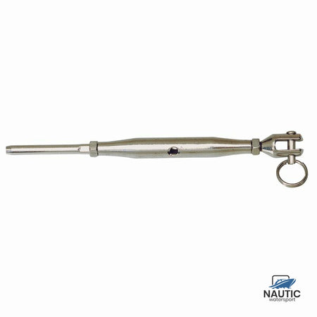 Der Gaffelverschluss besteht aus robustem Material und ist widerstandsfähig gegen die rauen Bedingungen auf See. Dank seiner Größe M6 und 3 mm Dicke passt er perfekt zu Standard-Riggspannern und ermöglicht Ihnen so eine einfache und sichere Einstellung der Spannung Ihres stehenden Guts.