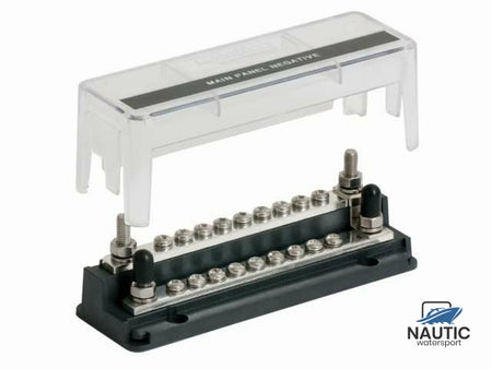 Optimieren und organisieren Sie die Elektrik Ihres Bootes mit der BEP Z-Stromschiene – entwickelt für Bootsfahrer, die Wert auf Zuverlässigkeit und Übersichtlichkeit legen. Mit 18 Klemmen und vier robusten Edelstahlbolzen bietet diese Stromschiene eine kompakte und platzsparende Lösung zum sicheren und effizienten Anschluss zahlreicher dünner Kabel.