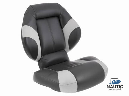Folding chair with an ergonomic design and extra lumbar support, ideal for use before or while fishing. Cushions are made of UV-resistant vinyl. The backrest folds forward easily, making the chair easy to store. The underside of the seat has universal mounting holes for standard chair legs.