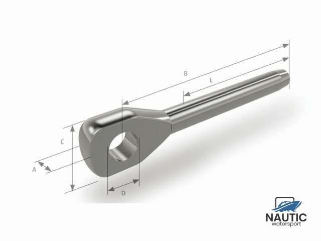 This eye terminal is designed for simple and reliable attachment of standing rigging and other rigging components. Thanks to its precise 7mm diameter, it fits perfectly, ensuring a secure connection without any slack.