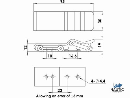 Flexible anti-theft latch that securely closes doors, hatches, and storage compartments. The flexible inner bead allows the latch to span a distance of 6mm, making it suitable for even the most challenging applications. This ensures a secure seal and eliminates rattling and vibration noise. Made of reinforced nylon with stainless steel.
