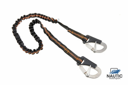 Dankzij het elastische materiaal past de lifeline zich soepel aan bewegingen aan, waardoor u vrij kunt manoeuvreren zonder in te boeten aan veiligheid. De double action haken bieden extra zekerheid: ze sluiten automatisch en voorkomen onbedoeld losschieten, wat cruciaal is in ruwe omstandigheden.
