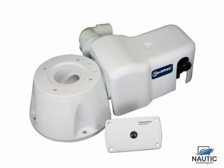 With the conversion kit you can easily convert a manual toilet to an electric toilet. The kit exists of a toilet base, switch panel and a combined flush- and wastewater pump. The combined pump for flush- and wastewater can pump up to 1.2m above the base. The conversion kit has a 360° discharge elbow which makes installation easier. The toilets are supplied including a 25mm and 38mm discharge elbow which makes the changeover from manual to electric even more easy because the 38mm discharge tube can be re-used.