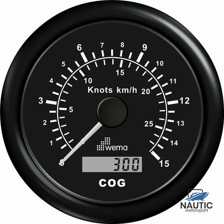 Wema heef één van de modernste GPS snelheidsmeters ontwikkeld die precies de huidige snelheid en de huidige koers aangeeft. De GPS snelheidsmeter geeft analoog de snelheid en de koers digitaal aan, daarnaast beschikt over een zeer accurate GPS ontvanger met 32 kanalen. Gemakkelijke installatie, doormiddel van meegeleverde GPS ontvanger en robuuste montage ring aan de achterzijde van het instrument.