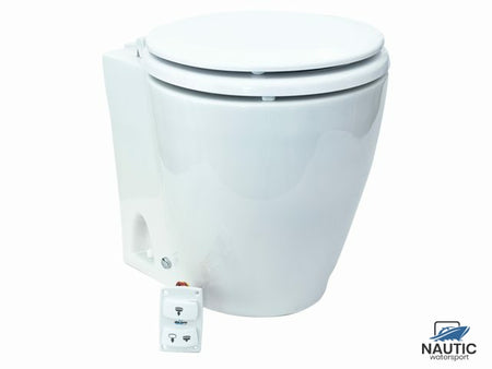 Met zijn 24V elektrische aandrijving zorgt het toilet voor een moeiteloze spoeling, waardoor u zich geen zorgen hoeft te maken over handmatige pompbediening. Het stille ontwerp voorkomt storende geluiden, zodat uw rust aan boord gewaarborgd blijft.